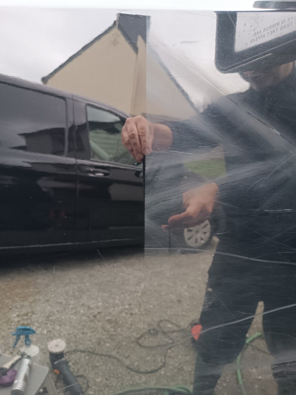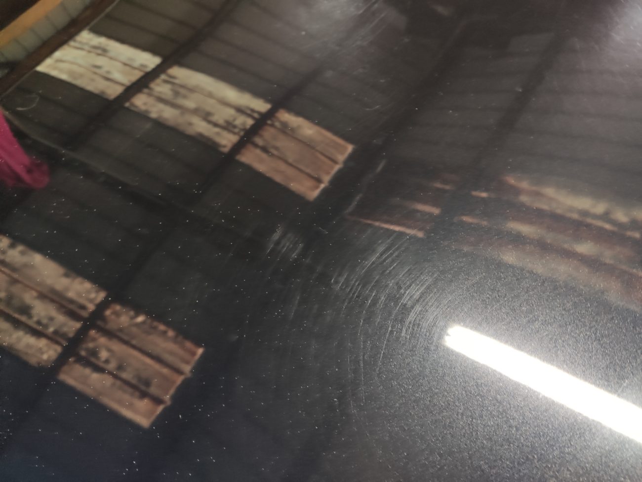 Elle était très micro-rayée et surtout la peinture présentait des taches d’eau (water spots) impossible à retirer au simple lavage ( l’acidité des produits d’entretien des stations de lavage, calcaire, pollution…)